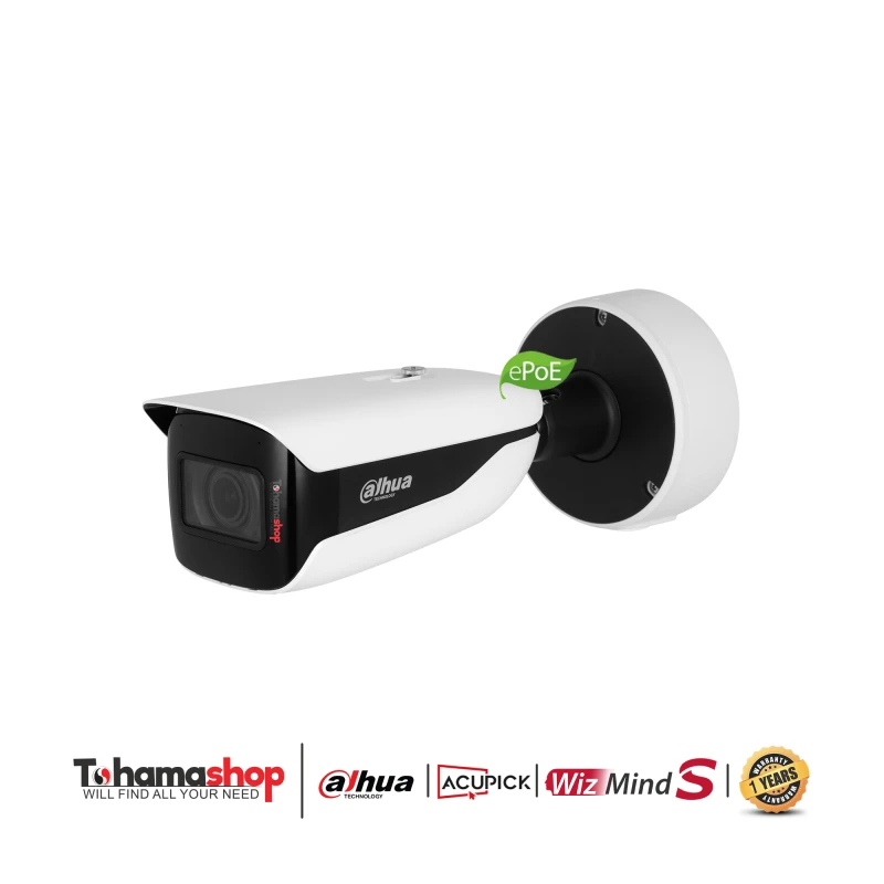 IPC-HFW5442H-ZHE EoL-L 4MP Vari-focal Bullet WizMind Network Camera > 4MP, 1/1.8" CMOS image sensor, low illuminance, high image definition > Outputs max. 4MP (2688 × 1520) @30 fps > Max. IR distance: 60 m > ROI, SVC, SMART H.264 +/H.265+, AI H.264/H.265,flexible coding, applicable to various bandwidth and storage environments > Rotation mode, WDR, 3D NR, HLC, BLC, digital watermarking, applicable to various monitoring scenes > Alarm: 3 in, 2 out; audio: 1 in, 1 out; supports max. 256 G Micro SD card > 12V DC/PoE power supply > ePoE, IP67, IK10 protection, Heater > Anti-corrosion coating (optional) > Supports junction box mount > SMD 3.0